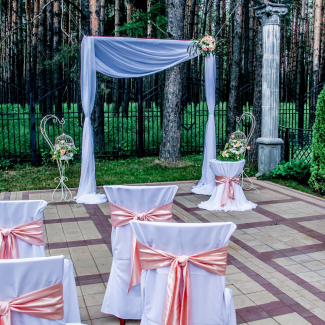 Так же в теплый период на территории Летнего дворика возможно проведения выездной регистрации бракосочетания под сводами греческой колоннады.